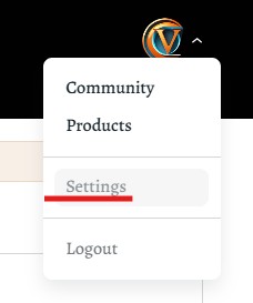 1. Klicka på högermenyn (under din profilbild). I denna menyn väljer du "Community". Observerka att du måste vara inloggad för att se detta val.